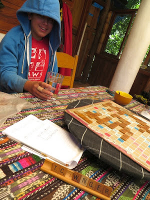 Most mornings, Lu is out with the goats from 7-10am, but on Wednesdays we have help and he gets a break. So we start our mornings with a game of Scrabble which I count as school because, besides being a game we both love, it's a fun way of improving spelling and developing vocabulary. We allow free use of the dictionary and learn new words every time.
